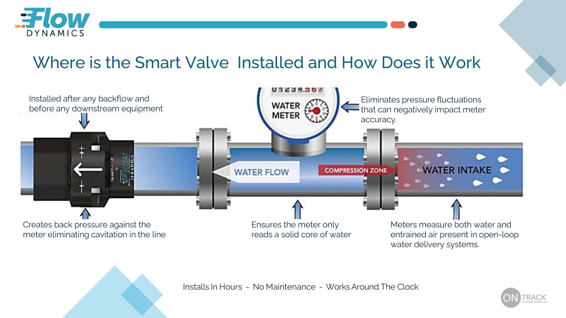 Solutions can integrate the Flow Dynamics Smart Valve with an AI Analytics Dashboard.
